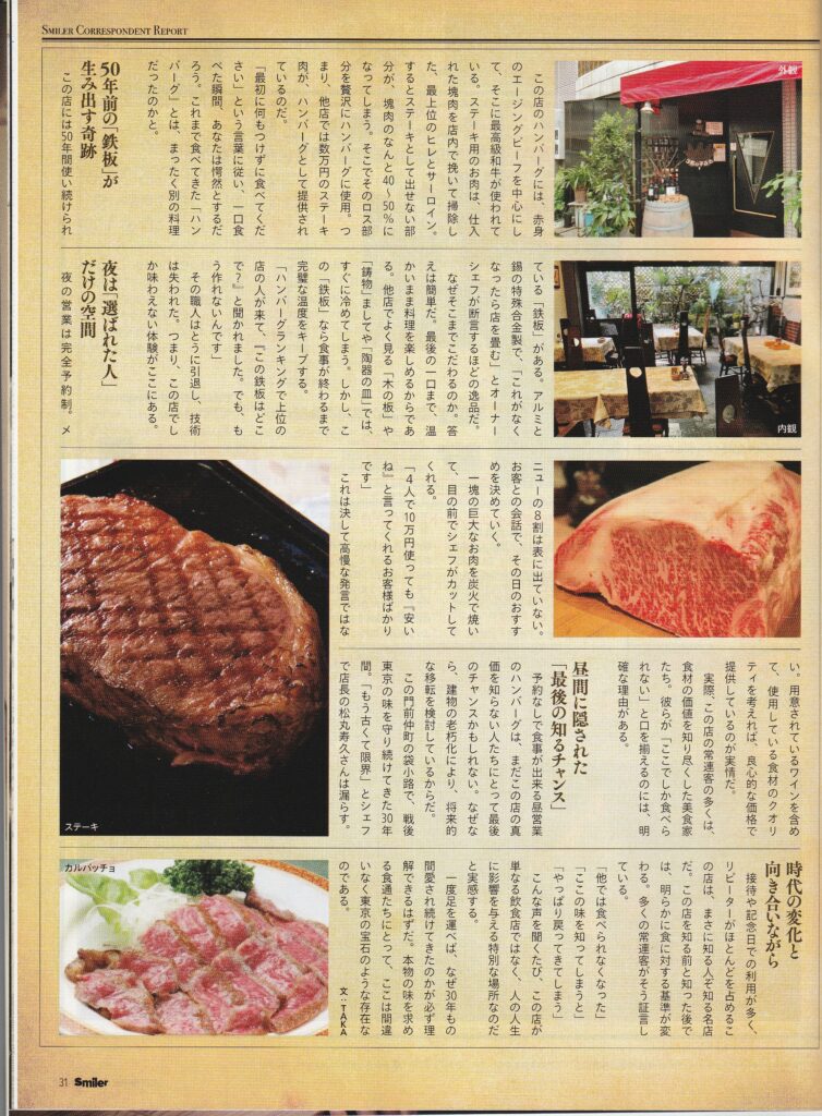 予約なしで食事が出来る昼営業のハンバーグは、まだこの店の真価を知らない人たちにとって最後のチャンスかもしれない。なぜなら、建物の老朽化により、将来的な移転を検討しているからだ。